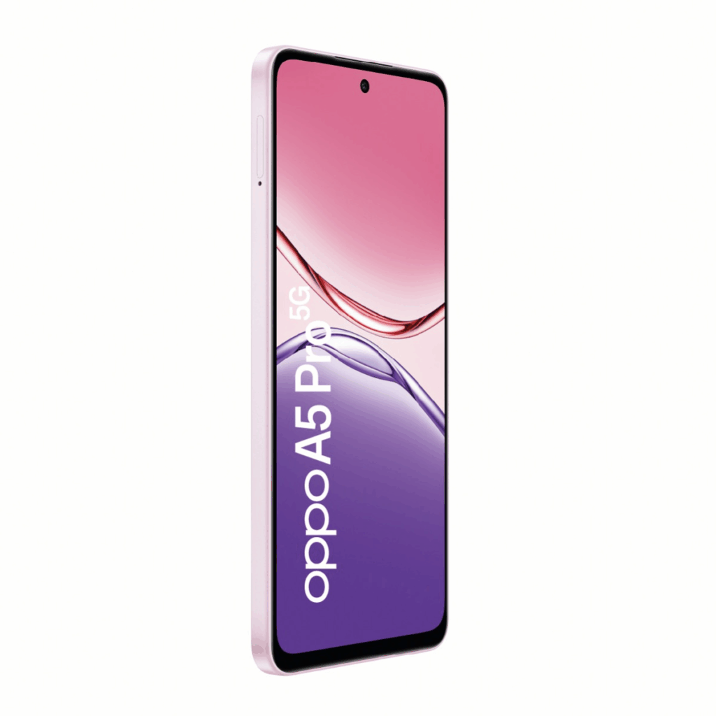 El OPPO A5 Pro 5G es un smartphone equilibrado y moderno que ofrece diseño atractivo, conectividad veloz y rendimiento confiable para el uso diario. Su construcción robusta con bordes rectos, acabado premium y un peso de apenas 190 g le otorgan comodidad y estilo, mientras su protección IP54 lo hace resistente al polvo y salpicaduras, ideal para acompañarte en cualquier contexto.