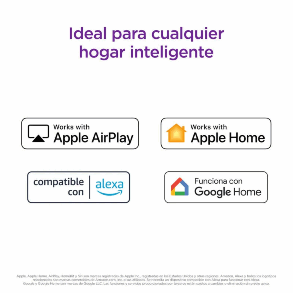 Compatible con Apple AirPlay, podés enviar contenido desde tu iPhone, iPad o Mac directamente al televisor.